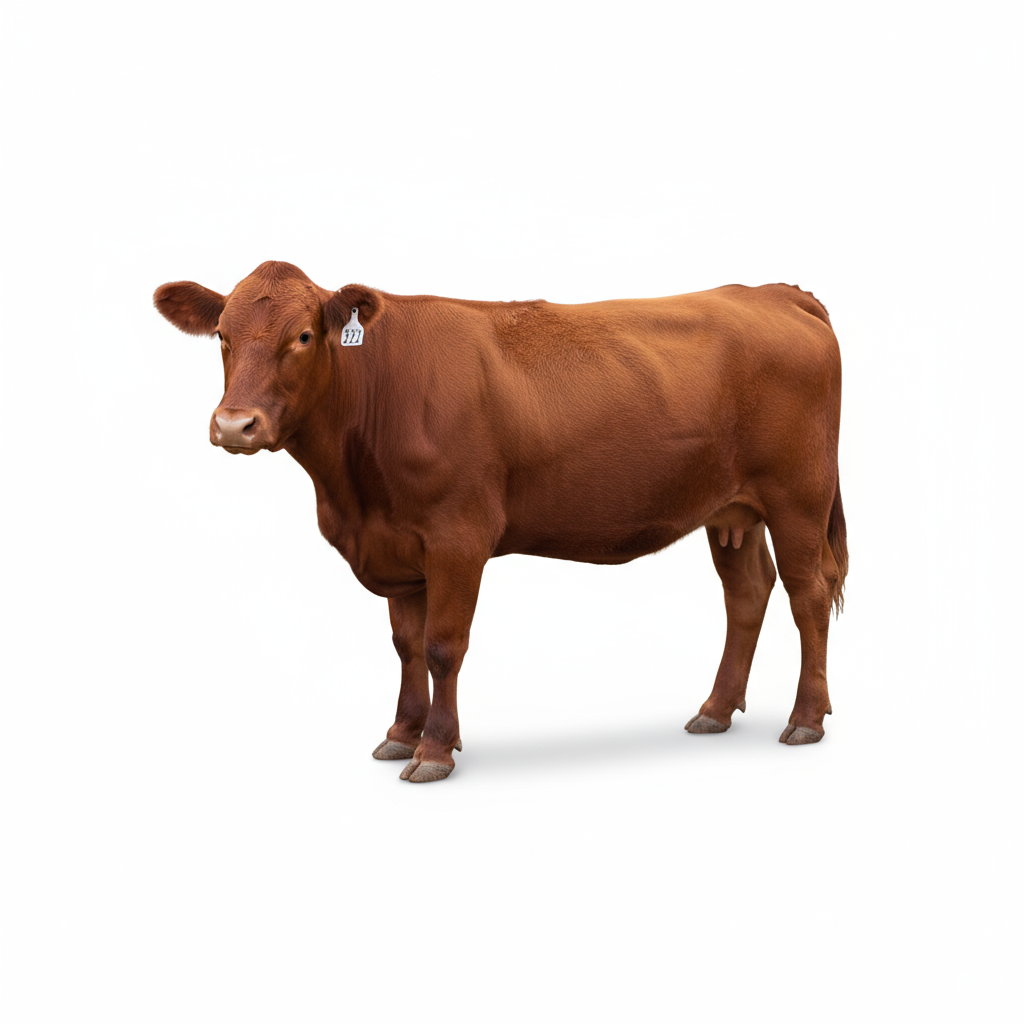 Add reliable, easy-doing genetics with Tag 322, a mature red crossbred cow showing a long frame, straight topline and sound legs/feet. Calm at the trough and used to yard work—well suited to breeding or beef programs depending on your goals.